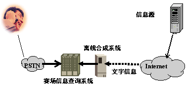 離線合成系統(tǒng)在用戶電話呼入前,將需要播放的文本信息預(yù)先轉(zhuǎn)換成語(yǔ)音文件存放在系統(tǒng)中,當(dāng)電話用戶呼入系統(tǒng)后,系統(tǒng)直接向用戶播放事先生成的語(yǔ)音文件。離線合成方式適用于作賽事快報(bào)、明星風(fēng)采、賽場(chǎng)花絮等公共信息類(lèi)信息服務(wù)。