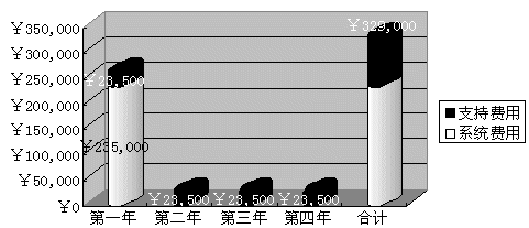 2) 語(yǔ)音合成投入費(fèi)用 科大訊飛公司語(yǔ)音合成技術(shù)以及硬件設(shè)備的折舊期為四年,而就經(jīng)過(guò)大量統(tǒng)計(jì)所得到的數(shù)據(jù)證明,采用語(yǔ)音技術(shù)后的一個(gè)72線的IVR系統(tǒng),大約可以完成一個(gè)中型的呼叫中心(配備100座席人員)所能提供的60%的業(yè)務(wù)。下圖為采用訊飛語(yǔ)音合成技術(shù)建設(shè)這樣的IVR系統(tǒng)的投入。