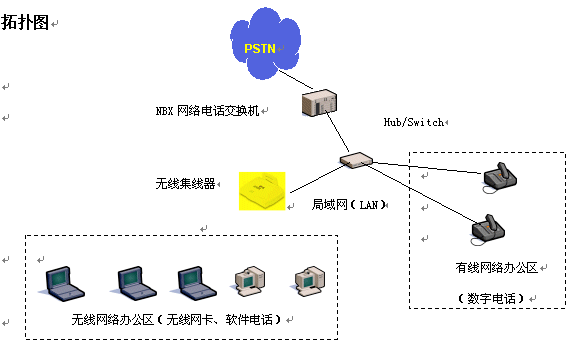 隨著信息時(shí)代的來(lái)臨,電話、電腦成了辦公領(lǐng)域的重要工具,人們?cè)谵k公室通過計(jì)算機(jī)網(wǎng)絡(luò)共享數(shù)據(jù)資源、傳遞數(shù)據(jù)信息,彼此間通過電話言語(yǔ)溝通。在人們享受到高科技帶來(lái)的高效率的同時(shí),也感到一些不便,例如計(jì)算機(jī)網(wǎng)絡(luò)、電話網(wǎng)都需要單獨(dú)鋪設(shè)專用的線路,線路的變更往往是讓人心煩的事情。隨著各公司推出無(wú)線局域網(wǎng)絡(luò)解決方案(AirConnect)和NBX網(wǎng)絡(luò)電話交換機(jī)平臺(tái)的推出,通過無(wú)線局域網(wǎng)絡(luò)技術(shù),語(yǔ)音、數(shù)據(jù)兩網(wǎng)合一技術(shù),將電腦、電話機(jī)合二為一,同時(shí)從線路的束縛中解放出來(lái)。人們?cè)僖膊挥脫?dān)心布線問題,可以隨處移動(dòng)辦公,享受無(wú)線網(wǎng)絡(luò)、無(wú)線話音,大大提高人們的辦公效率。