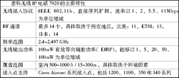 思科無(wú)線IP電話7920為思科的IP通信解決方案提供了第一代無(wú)線IP電話。思科WlanIP電話7920支持多種呼叫特性和有助于改善語(yǔ)音質(zhì)量的功能。