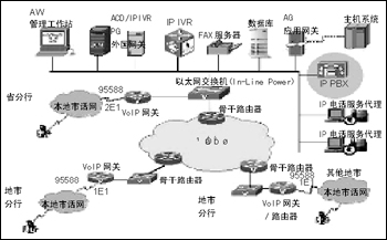 中國(guó)工商銀行甘肅省分行客戶(hù)服務(wù)中心的設(shè)計(jì)第一期系統(tǒng)容量為蘭州市為60路中繼接入,其他地(市)根據(jù)客戶(hù)容量分別采用30路中繼接入或12路中繼接入。語(yǔ)音接入都采用E1數(shù)字中繼接入方式,以后可以很方便地升級(jí)。省行IP