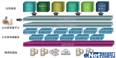 企業(yè)云通過采用硬件設(shè)備虛擬化、軟件版本標(biāo)準(zhǔn)化、系統(tǒng)管理自動(dòng)化和服務(wù)流程一體化等手段,把傳統(tǒng)的數(shù)據(jù)中心建設(shè)成為一個(gè)以服務(wù)為中心的運(yùn)行平臺(tái),資源的使用方式從專有獨(dú)占方式轉(zhuǎn)變成完全共享方式,運(yùn)行環(huán)境可以自動(dòng)部署和調(diào)整資源分配,實(shí)現(xiàn)資源隨需掌控,從而幫助客戶建立一個(gè)基于業(yè)務(wù)的資源共享、服務(wù)集中和自動(dòng)化的開放數(shù)據(jù)中心。