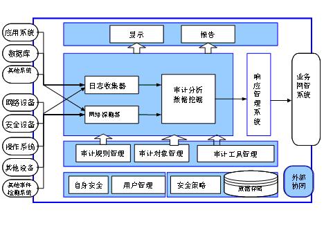 圍繞《薩班斯法案》第404條款的基本要求,結(jié)合運(yùn)營商的業(yè)務(wù)支撐系統(tǒng)運(yùn)維特點(diǎn),面向業(yè)務(wù)系統(tǒng)的安全審計(jì)系統(tǒng)一般應(yīng)具備以下功能: