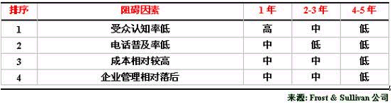 表三羅列了制約中國外包呼叫中心服務(wù)市場發(fā)展的主要因素。