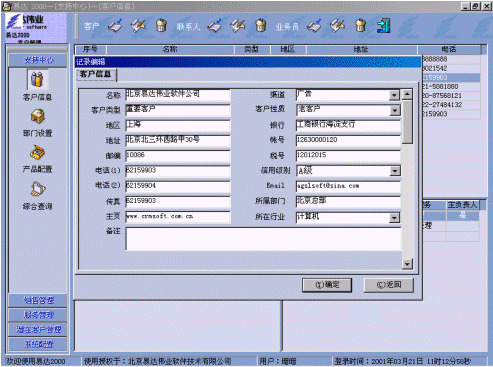 附:有關(guān)易達 2000 CRM軟件界面:
