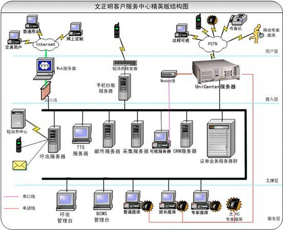 文正明的呼出系統(tǒng)可以通過電話,短信,email等各種方式主動為股民提供服務(wù)。由于ISDN的接續(xù)速度比較快,系統(tǒng)在呼出的性能上比模擬中繼和一號方式好很多。