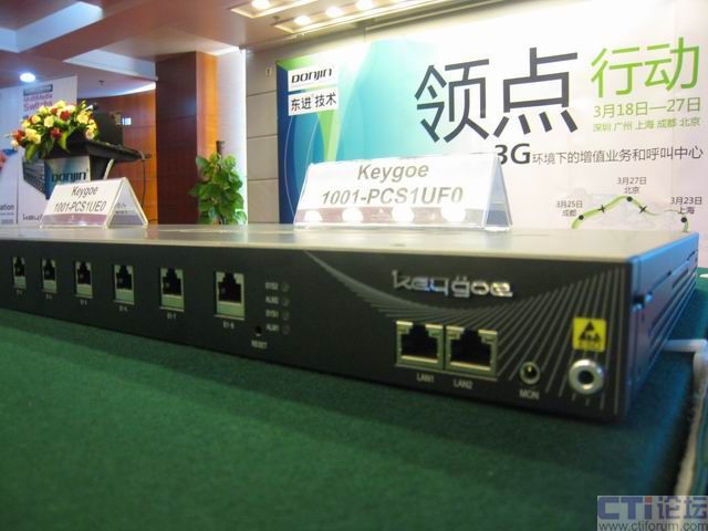 據(jù)了解,此次演示是基于以東進(jìn)Keygoe多媒體交換機(jī)為主體的平臺,東進(jìn)Keygoe多媒體交換機(jī)系列產(chǎn)品提供融合、開放、靈活和高性能的多業(yè)務(wù)承載平臺,可與3G網(wǎng)絡(luò)完全融合。此外在現(xiàn)場,Keygoe 1001的產(chǎn)品展示也是參會來賓關(guān)注的熱點(diǎn)之一。