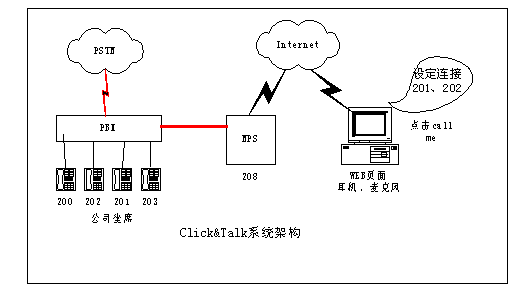 舉個例子,在傳統(tǒng)的網(wǎng)上交流手段下,對于一個在線商戶來說,其客戶如果需要與而且也容易造成客戶流失,F(xiàn)在采用Click&Talk系統(tǒng)后,一個在線的商戶只要將一個Click & Talk的按鈕嵌在在線商店里。世界各地的用戶只需要通過PC,點(diǎn)擊在線商戶的這個按鈕,就能與商戶電話聯(lián)系,或請求在方便的時間給予回?fù)。通過這種通信模式,世界各地的客戶都能和您保持密切互動的聯(lián)系,而不用擔(dān)心長途電話的費(fèi)用。還可以實(shí)現(xiàn)公司出差人員及分支機(jī)借助Click&Talk平臺和公司總部的通話的應(yīng)用,大幅節(jié)省話費(fèi)成本。