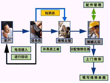 后臺客服應用子系統(tǒng)建成后,客戶的投訴被自動導入,生成投訴單和維修單,自動轉(zhuǎn)發(fā)給維修部,安裝部等專業(yè)部門進行處理,處理完后,系統(tǒng)會安排話務(wù)員進行回訪,消費者的處理意見和滿意度將被忠實地記錄下來,進一步充實到客服數(shù)據(jù)庫中以指導企業(yè)的生產(chǎn)研發(fā)。