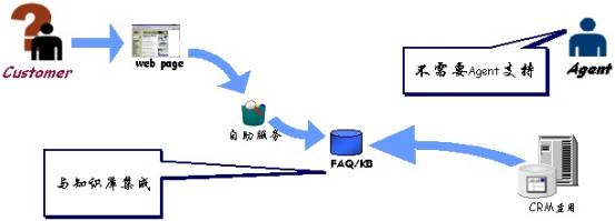 自助服務:實際上,客戶咨詢的很多問題都屬于FAQ。對于這類問題,Quintus WebCenter提供“自助服務”,用戶無須客服代表的幫助,即可快速獲得答案,這一方面可減少企業(yè)客服代表的數(shù)量,另一方面提高了用戶咨詢的響應速度。此外,CRM的管理人員可通過FAQ管理加入新的FAQ,或去掉過時的FAQ。
