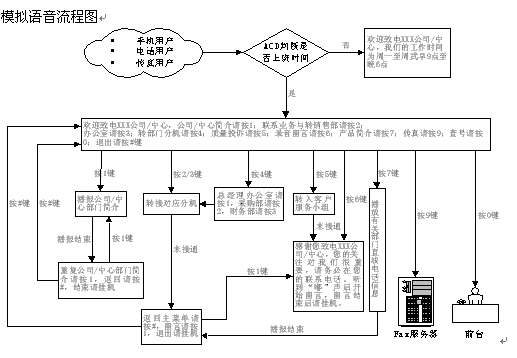 - 本系統(tǒng)的服務(wù)內(nèi)容包括:企業(yè)與政府部門簡介,產(chǎn)品與服務(wù)簡介,人工服務(wù),轉(zhuǎn)部門分機(jī),呼叫轉(zhuǎn)移,部門直線電話號(hào)碼查詢,質(zhì)量與服務(wù)投訴,錄音留言等。