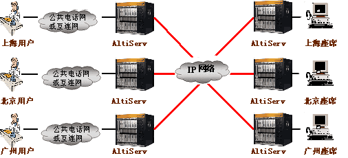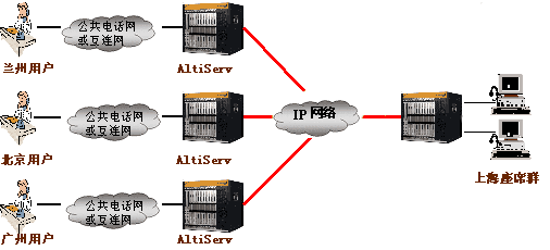 奧迪堅(jiān)分布式呼叫中心圖 (多對(duì)一):