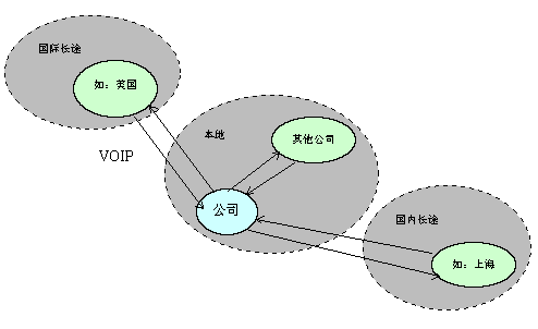 (1) 對于本地其他公司或個人:可以利用VOIP或市話接入公司,再轉入國內(nèi)長途或者國際長途。