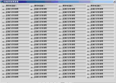 | 硬件配置 | 1、自動(dòng)語音應(yīng)答系統(tǒng): PC機(jī)或工控機(jī)(PIII800 CPU/256M內(nèi)存/40G硬盤/)Dialogic模擬語音傳真卡(VFX/40ESC plus) Dialogic 座席卡(MSI/80SC) 2、人工座席系統(tǒng):聯(lián)想中高端商用電腦 3、數(shù)據(jù)庫(kù)系統(tǒng):聯(lián)想萬全工作組級(jí)和部門級(jí)服務(wù)器 |