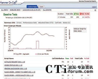 只需使用一個簡單易用的Web接入就可以和Empirix測試小組一起實時跟蹤測試進度。此外,還同時可以查看測試結果、發(fā)生失敗的類型和導致失敗發(fā)生的測試流量。通話全程記錄功能可以用來記錄相關通話,從而捕獲和幫助診斷發(fā)生失敗的根源?梢詤⒖枷铝袌D表: