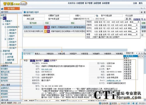 管理好客戶,做好客戶資料的詳細管理;管理企業(yè)各部門與客戶交往的所有日程活動。讓查閱者一目了然。并可以對客戶進行精準營銷,如群發(fā)短信、群發(fā)傳真、群發(fā)郵件等。
