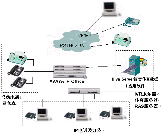 針對現(xiàn)代企業(yè)辦公通信的特點(diǎn)和要求,Avaya與Eicon經(jīng)過嚴(yán)格的產(chǎn)品互操作測試,及應(yīng)用調(diào)試共同推出了企業(yè)一體化辦公平臺(tái)解決方案,該解決方案整合了兩家公司的交換機(jī)、語音傳真板卡的各自優(yōu)勢,既可以應(yīng)用于傳統(tǒng)的網(wǎng)絡(luò)環(huán)境,又能應(yīng)用于純IP的通信環(huán)境,將不同的應(yīng)用技術(shù)和網(wǎng)絡(luò)結(jié)合起來,做到真正的辦公一體化。