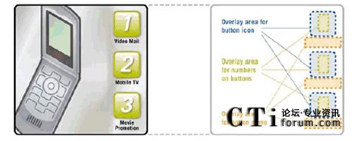 互作用提出了更進(jìn)一步的挑戰(zhàn)。能夠使用戶(hù)訪(fǎng)問(wèn)多個(gè) TV 頻道以及獲得其他服務(wù)的視頻門(mén)戶(hù),是一個(gè)很好的研究實(shí)例。視 頻門(mén)戶(hù)顯示了基于每個(gè)用戶(hù)活動(dòng)、訪(fǎng)問(wèn)權(quán)限、服務(wù)描述等的服務(wù)菜單。一般來(lái)說(shuō),菜單是有限列表,用戶(hù)通過(guò)在手持終端 按下相應(yīng)的鍵來(lái)進(jìn)行選擇 (圖2.通過(guò)示意圖說(shuō)明了動(dòng)態(tài)菜單的映射方法)。為了創(chuàng)建菜單,應(yīng)用程序控制了基礎(chǔ)架構(gòu),而該 基礎(chǔ)架構(gòu)動(dòng)態(tài)地生成了有限列表,并在當(dāng)前的視頻流頂端顯示為一個(gè)靜態(tài)覆蓋圖。相同技術(shù)可用于顯示基于用戶(hù)活動(dòng)或位 置進(jìn)行品牌和廣告宣傳的 logo 或文本。