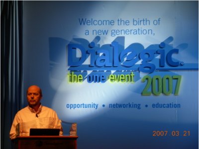 大會首先由Dialogic公司的全球資深副總裁 James Besley致辭。“我們回來了!”,James一句意味深長的開場白引來了全場長時間的熱烈鼓掌。是的,曾幾何時,Dialogic在全球CTI領(lǐng)域是何等的輝煌,上個世紀九十年代他們?nèi)〉眠^驕人的業(yè)績,占據(jù)了全球市場的絕大部分份額,稱之為當時CTI行業(yè)的先驅(qū)和領(lǐng)導(dǎo)者實不為過。
