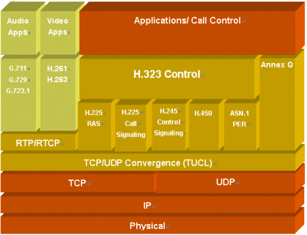 。。H.323是ITU-T的標準,定義了在分組網(wǎng)(LAN, WAN, Internet)上進行多媒體通信所需的組件、協(xié)議和規(guī)程。