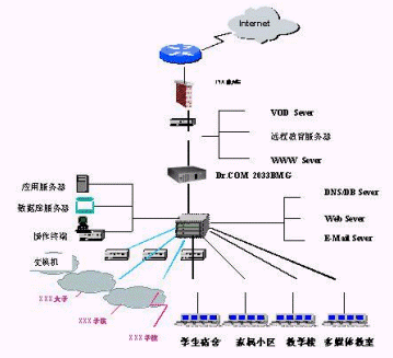 BRAS的驗(yàn)證才能上網(wǎng)。校園網(wǎng)系統(tǒng)應(yīng)能覆蓋整個(gè)校園,并連接所有的學(xué)院和辦公區(qū),為大學(xué)開(kāi)展現(xiàn)代化的經(jīng)營(yíng)管理和辦公教學(xué)提供一個(gè)具有開(kāi)放式體系結(jié)構(gòu)的計(jì)算機(jī)網(wǎng)絡(luò)系統(tǒng),具有高度的可靠性和可擴(kuò)展能力。對(duì)校園網(wǎng)內(nèi)的每一用戶(老師或?qū)W生)、閱覽室、圖書(shū)館、多媒體教室等都能夠進(jìn)行單獨(dú)的管理、計(jì)費(fèi)(時(shí)長(zhǎng)、時(shí)段、包月、流量)、驗(yàn)證、授權(quán)(瀏覽、下載、收發(fā)信件、網(wǎng)站屏蔽)、共享、帶寬分配。尤其對(duì)學(xué)生和老師區(qū)別的管理非常獨(dú)特。