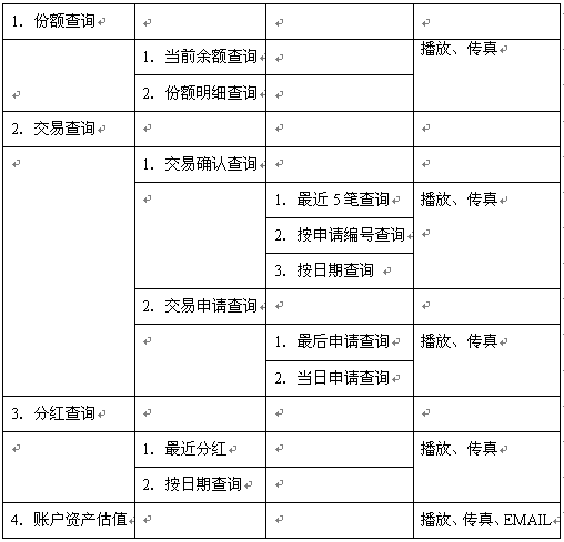 除了前文涉及到的受理投訴、建議、查詢申購地點(diǎn)等等關(guān)懷服務(wù)外,系統(tǒng)可提供以下關(guān)懷服務(wù):如何填寫開放式基金賬戶業(yè)務(wù)申請(qǐng)表、如何填寫開放式基金交易業(yè)務(wù)申請(qǐng)表、如何填寫開放式基金業(yè)務(wù)授權(quán)委托書等等。