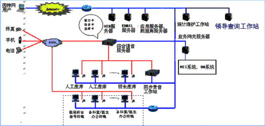 。。本系統(tǒng)提供基于計(jì)算機(jī)語音板卡和交換機(jī)兩種語音接入方式,都支持1號和7號信令線路的接入。對于20個以下座席的中小型醫(yī)院客戶服務(wù)中心系統(tǒng),則建議使用基于計(jì)算機(jī)語音板卡的形式,可以減少醫(yī)院投資,同時具有良好的系統(tǒng)性能;對于特大型的醫(yī)院客戶服務(wù)中心系統(tǒng),可選用交換機(jī)作為語音接入設(shè)備,保障系統(tǒng)的高可靠性和穩(wěn)定性。確保合理的、較少的投入,獲取最佳的配置,滿足不同醫(yī)院的需求。