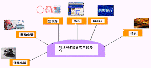 提供用戶通過(guò)電話、網(wǎng)絡(luò)電話、傳真、電子郵件、因特網(wǎng)瀏覽、手機(jī)或其它手段接入到科技局客戶服務(wù)中心,是系統(tǒng)的入口。