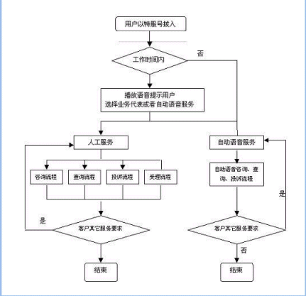 客戶打入電話后,當(dāng)系統(tǒng)的自動(dòng)語音應(yīng)答子系統(tǒng)無法解決納稅人問題時(shí),客戶可選擇人工服務(wù),由客戶服務(wù)代表直接接聽納稅人電話,處理并解決納稅人問題。此時(shí)納稅人同座席話務(wù)人員直接溝通,并同時(shí)記錄下該客戶的聯(lián)系方式,將相關(guān)數(shù)據(jù)添加入系統(tǒng)數(shù)據(jù)庫;也可以在數(shù)據(jù)庫的支持下回答國家和地方的稅收政策及相關(guān)規(guī)定等的咨詢和疑問。客戶也可以選擇自動(dòng)語音服務(wù)方式,根據(jù)系統(tǒng)的語音提示輸入按鍵,選擇類別,將自己的投訴和建議以及自己的聯(lián)系方式信息以留言錄音的方式保存在系統(tǒng)中。系統(tǒng)同時(shí)還支持自動(dòng)傳真方式,客戶可以通過傳真機(jī)進(jìn)入本系統(tǒng),通過按鍵選擇傳真方式,將自己的意見建議等的文本內(nèi)容傳真給系統(tǒng),系統(tǒng)自動(dòng)接受并存入數(shù)據(jù)庫。