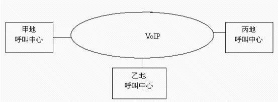 PRI,ISDN BRI,E&M或VoIP 等接口實現(xiàn),每條話路只須8Kbit/s帶寬,并支持網(wǎng)絡(luò)優(yōu)化路由及D通道座席預(yù)約,大大降低網(wǎng)絡(luò)連接費(fèi)用,提高運(yùn)行效率。目前主流的方式是采用VoIP技術(shù)。如下圖所示: