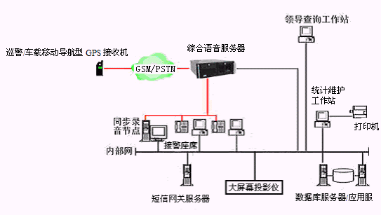 博宇科技110無線報警定位調(diào)度系統(tǒng)指揮調(diào)度中心的物理結(jié)構(gòu)由帶語音板卡的高性能工控機、CTI服務器、接警座席、統(tǒng)計維護管理工作站、數(shù)據(jù)庫服務器/應用服務器、短消息網(wǎng)關服務器、同步數(shù)字錄音工作站、網(wǎng)絡系統(tǒng)和大屏幕投影儀等以及所開發(fā)的有關應用軟件構(gòu)成。