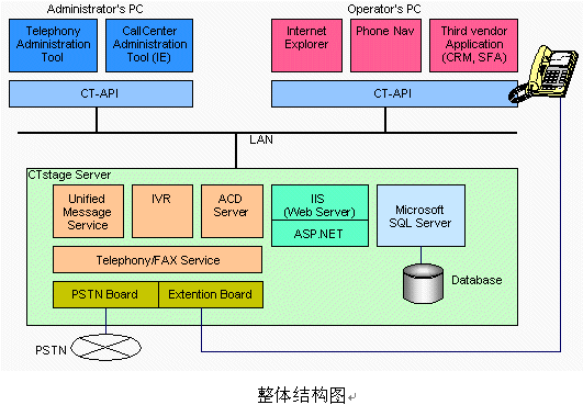 隨著經(jīng)營(yíng)環(huán)境和企業(yè)環(huán)境的日益激化,作為新時(shí)代的信息策略,計(jì)算機(jī)電話集成(CTI)也由于投資小效益大而倍受注目。沖電氣公司的CTstage實(shí)現(xiàn)最先端的多媒體通信的UnPBX(在服務(wù)器中加插電話板卡,以單臺(tái)計(jì)算機(jī)實(shí)現(xiàn)PBX功能的系統(tǒng))型的開(kāi)放式CTI系統(tǒng)。在一臺(tái)PC服務(wù)器上實(shí)現(xiàn)IVR和ACD功能、內(nèi)線電話控制、ACD監(jiān)視器等呼叫中心所需要的功能,成為真正意義上的UnPBX呼叫中心。先進(jìn)的CTI的解決方案將作為企業(yè)的經(jīng)營(yíng)策略,迅速提高適應(yīng)市場(chǎng)的能力。