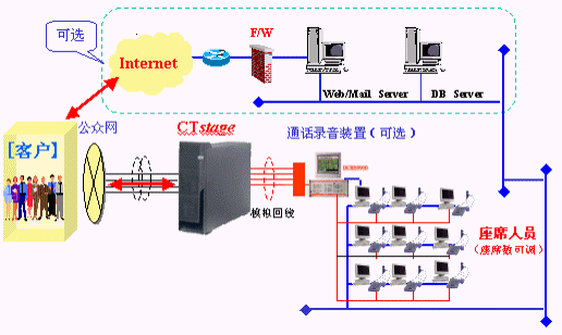 近來客戶關系管理逐漸成為注目的焦點,客戶服務中心(即呼叫中心)已不再是電信企業(yè)、航空公司、商業(yè)銀行等大型企業(yè)與用戶密切交互的媒體,許多中小型企業(yè)也逐漸認識良好客戶關系的提升已成為競爭時代的致勝關鍵。同時,呼叫中心經過幾年的發(fā)展與摸索,產品的穩(wěn)定性和價格已經鎖定在企業(yè)可以接受的范疇。在"完美服務質量""對外有效提高客戶服務質量,擴大收入;對內大幅提高員工生產力,降低成本"的巨大期待下,各企業(yè)開始了建設呼叫中心的步伐,也開始了對合作伙伴的挑剔選擇。而由日本沖電氣(OKI)公司提供基于CTI產品CTstage構筑的UnPBX型呼叫中心,為中國的中小型企業(yè)量身打造了完美的客戶服務中心。