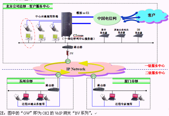 OKI的IP客服中心可以將各個分點和服務器間用VoIP網(wǎng)關(guān)連接。OKI的VoIP網(wǎng)關(guān)"BV系列",是在"MOS(Mean Opinion Score)"和"PESQ(Perceptual