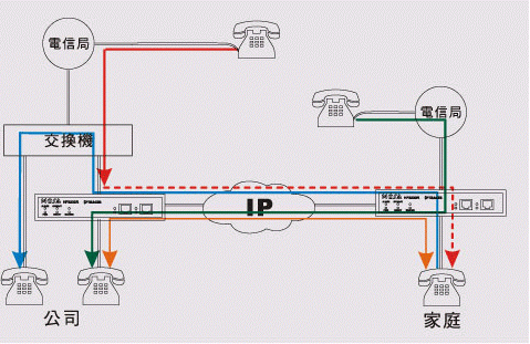 在家里亦可利用公司FONEMOSA遠(yuǎn)易通撥出電話及收聽語音信箱 下班后若需處理公務(wù)而需撥打國(guó)際或長(zhǎng)途電話,裝設(shè)FONEMOSA遠(yuǎn)易通之后便可將家里的電話當(dāng)成辦公室分機(jī),舉凡撥接國(guó)際或長(zhǎng)途電話、其它同仁分機(jī),或者聽取您的語音留言等等都可。若是跨國(guó)性企業(yè)在海外有多個(gè)據(jù)點(diǎn),可以在各據(jù)點(diǎn)安裝FONEMOSA遠(yuǎn)易通,這樣既便在家里就如同在各據(jù)點(diǎn)上班一樣。(圖標(biāo):On-Net