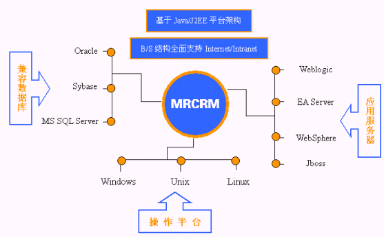 從技術(shù)角度講:MRCRM采用先進(jìn)的Java/J2EE平臺架構(gòu),具有良好的開放性、移植性和可擴(kuò)展性。采用獨(dú)有的XBridge框架,通過XML文檔完成數(shù)據(jù)交換;業(yè)務(wù)層與數(shù)據(jù)層、表現(xiàn)層分離,業(yè)務(wù)邏輯封裝在EJB中。其技術(shù)特點(diǎn)主要為: