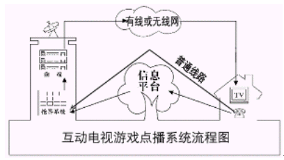 從信息高速公路的理論講,雙向寬帶網(wǎng)會給我們的生活帶來革命性的變化。由于客觀條件的限制,我國目前無論是電信網(wǎng),還是電視網(wǎng)都沒能實現(xiàn)寬帶雙向服務,但是無論是電視網(wǎng),還是電信網(wǎng),本身都相當完善,所以我們完全可以通過一定的技術手段將電信網(wǎng)與電視網(wǎng)有機的結合起來,發(fā)揮信息平臺優(yōu)勢,讓電視互動起來,從而能夠在現(xiàn)有的條件下開展新的業(yè)務。互動電視游戲點點播系統(tǒng),它就是用電信網(wǎng)傳遞上行信號,用電視網(wǎng)傳遞下行圖像,利用寬帶網(wǎng)的原理使電視互動了起來。