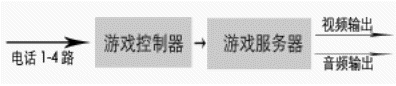 由于許多地區(qū),尤其是縣級市沒有信息平臺,而且許多電視臺愿與電話局直接合作。在這種情況下,電話局和電視臺合作對有線用戶公布 特服號碼,如123456,參與互動游戲的用戶,統(tǒng)一撥打該號碼,電話局提供四條用戶線給互動游戲系統(tǒng),同時對撥打123456的用戶都轉到這四條用戶線來,從而接入到互動游戲系統(tǒng),由系統(tǒng)給出語音提示引導用戶參與比賽。由于系統(tǒng)最多允許四個人參與比賽,當用戶滿時,撥打游戲熱線的用戶
