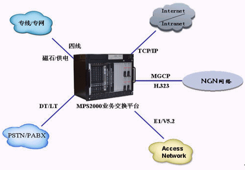 - MPS2000具有多接口的支持能力。系統(tǒng)除了能支持數(shù)字中繼以外還能夠支持環(huán)路中繼、E/M接口、磁石接口、共電接口等專網(wǎng)中常用的接口,以及IP接口,以便與IP語音網(wǎng)對接。