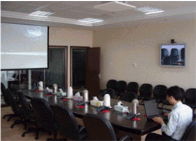 1、 視頻會(huì)議系統(tǒng)。本會(huì)議室可以召開包含6個(gè)會(huì)場的768Kbps會(huì)議,不僅能召開本公司的多點(diǎn)會(huì)議,還可以與國內(nèi)外任何連接寬帶IP網(wǎng)絡(luò)的地方進(jìn)行視頻通訊。電視會(huì)議系統(tǒng)與電子會(huì)議室的顯示、音響設(shè)備有機(jī)融合,進(jìn)行視頻會(huì)議過程與普通會(huì)議一樣簡單。