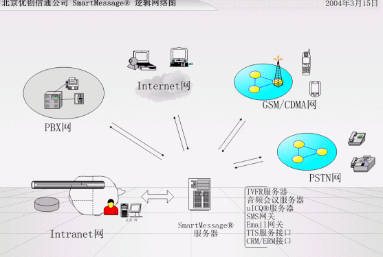 完全自主版權的 SmartMessage Pro®是專為企業(yè)級使用單位設計的通信服務平臺,提供多種通信一體化解決方案,如統(tǒng)一消息、語音郵件、交互會議、IVR、手機短信/傳真/電話服務及呼叫中心,這些應用可無縫集成在一套標準化平臺上,是全方位實施CRM系統(tǒng)和電子商務服務解決方案的重要組成。