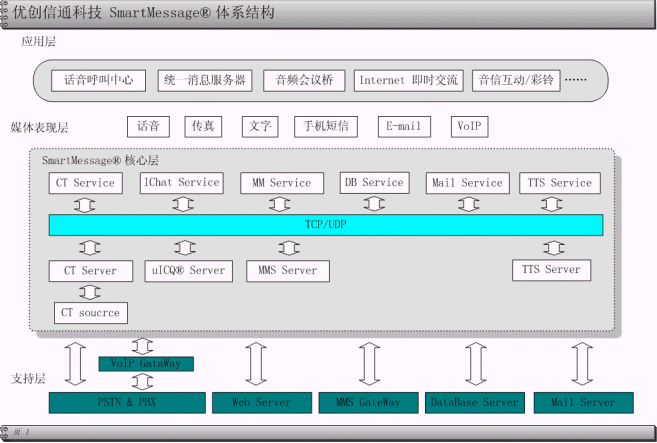 ·基于SmartMessage®模塊化框架體系,保證系統(tǒng)各種應用擴展;特別具備UMS統(tǒng)一消息分發(fā)擴展功能,方便使用者開展多種增值服務和應用。