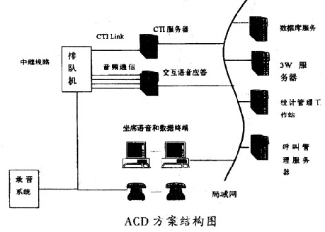 這種方案的核心思想是在專(zhuān)用交換機(jī)+ACD的基礎(chǔ)上擴(kuò)展路由和統(tǒng)計(jì)的功能,開(kāi)放CTI -Link接口,用CTI技術(shù)實(shí)現(xiàn)通信和計(jì)算機(jī)的功能結(jié)合,再配以必要的語(yǔ)音和數(shù)據(jù)庫(kù)系統(tǒng),從而以強(qiáng)大的通信和計(jì)算機(jī)功能滿(mǎn)足呼叫中心的要求。