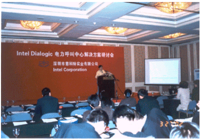 2002年3月27日,佳訊飛鴻公司參加了由美國(guó)Intel公司通訊業(yè)務(wù)事業(yè)部和深圳市意科特實(shí)業(yè)有限公司聯(lián)合主辦的“Intel Dialogic電力呼叫中心解決方案研討會(huì)”。公司技術(shù)總監(jiān)王曉暉在會(huì)上做了題為《電力客服系統(tǒng)與AnyTouch平臺(tái)》的報(bào)告,并針對(duì)電力行業(yè)的特點(diǎn),向與會(huì)者介紹了基于Intel Dialogic語音卡系列的呼叫中心解決方案以及可無縫升級(jí)為交換機(jī)和Internet呼叫中心解決方案。佳訊公司還向與會(huì)代表演示了基于公司自主研發(fā)的AnyTouch平臺(tái)的HDSI120路高密度語音卡呼叫中心系統(tǒng)。報(bào)告和演示得到了會(huì)議主辦單位和與會(huì)代表的關(guān)注。