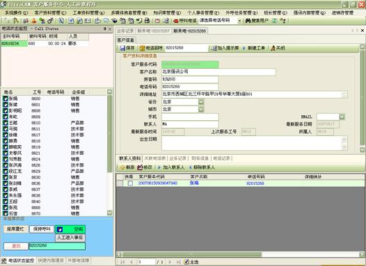 系統(tǒng)與CTI服務(wù)器配合,輕松實(shí)現(xiàn)諸如:最佳路由選擇、自動(dòng)彈出客戶(hù)信息、座席通過(guò)屏幕控制電話接聽(tīng),轉(zhuǎn)接,會(huì)議,監(jiān)聽(tīng)等。同時(shí),系統(tǒng)支持由座席安排定時(shí)電話自動(dòng)外撥、批量電話外撥、批量傳真發(fā)送、坐席通話錄音、坐席通話監(jiān)聽(tīng)等服務(wù)。