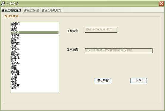 3) 工作流閉環(huán)、客戶(hù)通話歷史,客戶(hù)聯(lián)系歷史,工單流轉(zhuǎn):工作流系統(tǒng)是通過(guò)工單實(shí)現(xiàn)各工作流環(huán)節(jié)的聯(lián)系以及工作流的定義管理,工作流狀態(tài)查詢(xún)、更改的。操作員可根據(jù)用戶(hù)的不同業(yè)務(wù)請(qǐng)求,建立相應(yīng)的工單記錄,并對(duì)該事后處理過(guò)程進(jìn)行跟蹤;也可對(duì)要處理的事務(wù)形成工單轉(zhuǎn)給相應(yīng)的操作員,并跟蹤該工單的處理過(guò)程;可定期提示操作員處理要過(guò)期的工單,以提高服務(wù)質(zhì)量;每次處理過(guò)程都會(huì)有詳細(xì)的記錄,以便統(tǒng)計(jì)查詢(xún) 。如圖8、9、10:
