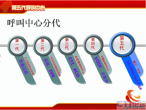 第五代呼叫中心的定義比較簡單,第五代呼叫中心是基于UC的,基于SOA和實時服務總線技術的,具備JIT管理思想和作為全業(yè)務支撐平臺TSP的呼叫中心系統(tǒng)。