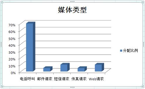 從電話呼叫中心角度來考慮,不同媒體如果只是電話呼叫的不同類型。例如,電話呼叫是咨詢,郵件是查詢、短信是受理、傳真是投訴、Web請求是預(yù)訂。