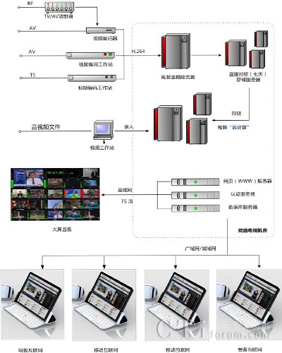 網(wǎng)絡(luò)廣播既有傳統(tǒng)廣播電視靈活生動的表現(xiàn)形式,又有互聯(lián)網(wǎng)按需獲取的交互性,如何組織、存儲、管理、發(fā)布信源,充分利用電視臺豐富的資源,提供個性化的服務(wù),是辦好電視媒體網(wǎng)站的關(guān)鍵。網(wǎng)絡(luò)與電視互利互惠、優(yōu)勢互補將是當(dāng)前電視與網(wǎng)絡(luò)的最佳狀態(tài)。放眼世界和未來,可以預(yù)見:在全球邁向“信息時代”的今天,電視將與網(wǎng)絡(luò)在競爭中走向不斷融合、創(chuàng)新進而達到新的繁榮。目前開辦網(wǎng)絡(luò)電視臺是各級廣電單位最為行之有效的解決方案,并成功地應(yīng)用于實際。下文筆者主要將在構(gòu)建網(wǎng)絡(luò)電視臺時的高清TS流直播技術(shù)難題,以及實際應(yīng)用中的解決方案,與各位同行共享。