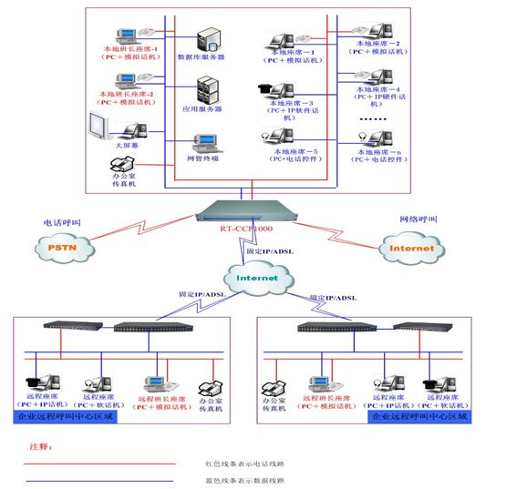 在北京石景山區(qū)政府68812345便民服務(wù)熱線項(xiàng)目中,RT-CCP1000內(nèi)置的SIP協(xié)議為區(qū)政府便民服務(wù)落到了實(shí)處。在此次項(xiàng)目中,區(qū)政府為各類熱線問題均設(shè)置了遠(yuǎn)端專家坐席,專家坐席通過IP電話和數(shù)據(jù)專網(wǎng)遠(yuǎn)程注冊到RT-CCP1000設(shè)備上,這樣當(dāng)本地普通坐席遇到緊急或重要問題時(shí),可以將來電直接轉(zhuǎn)接給相關(guān)業(yè)務(wù)的遠(yuǎn)端專家坐席,以便得到及時(shí)有效的處理。
